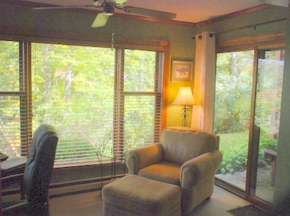 Nicely remodeled condo with functional charm and warmth. Great starter place in Blowing Rock. Walk to town or cozy up by the stone fireplace on a cold Fall or Winter evening. This unit has a large grassy area just outside the door and a patio with an excellent view just off the Sun Room. Pets are permitted. Kitchen and both bathrooms are newly remodeled with ceramic tile and custom cabinets and counters. Also new windows and sliding door. First floor convenience and safety. Walking to town is always enjoyable and just enough of a challenge to have real merit. The POA is responsible for all exterior maintenance, parking care, snow removal and lawn and landscaping care. This is the best unit in a very popular complex. It is FOR SALE only because the owners have purchased a house in Blowing Rock. You, too, may wish to start your mountain experience here before moving up. Very convenient parking on same level as front door............no steps to climb. Excellent neighbors about 50/50 full timers or regular weekend residents. Many are weekend commuters from Charlotte.