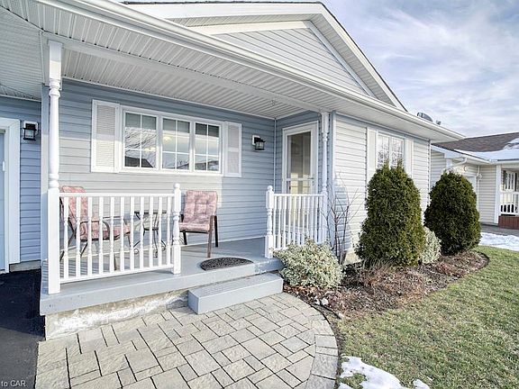 **Adult Lifestyle Community** A welcoming front porch invites you into this lovely bungalow in Antrim Glen - an adult lifestyle community for retirees and empty-nesters. This carpet-free home has had new flooring throughout during the past few years, including new ceramics in the modernized kitchen with pretty backsplash and stainless steel appliances. Vaulted ceilings give a more spacious feel with neutral paint colours throughout. The master bedroom has a 3 pc ensuite bath and walk-in closet. The second bedroom includes a walkout to the deck and can easily be used as office/den space too. This home is surrounded with beautiful gardens, shrubs & trees and pride of ownership is evident. Winter is a breeze with the brand new furnace (October 2019) and convenient inside entry to the home from the single garage. No shovelling snow required here either - snow removal & lawn maintenance is taken care of in this land lease community. You will also enjoy the salt water pool in the nice weather, and the other many amenities this community has to offer all year long. Convenient to Cambridge & Waterdown, while offering a country-feel, this home is sure to please!