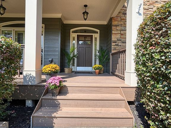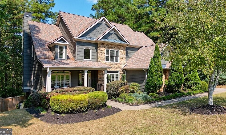 Distinguished Craftsman-style home constructed with hardiplank and stone exudes timeless charm, character, and impressive curb appeal. Classic details include large windows throughout, a hallmark of Craftsman architecture that fills the home with natural light. An inviting front porch with durable Trex-type flooring provides the perfect space for relaxing and entertaining family and friends. Inside, the open floor plan features soaring ceilings in the entry and family room, creating an airy and welcoming atmosphere. A formal dining room and a versatile study or living room flank the entryway, both boasting large windows and elegant plantation shutters. Gleaming hardwood floors flow throughout the main level and up the striking staircase. The spacious family room is lined with multiple windows that showcase long-range views of the scenic Etowah forest. The floor plan seamlessly transitions into the casual dining area, and keeping room with a cozy fireplace and gourmet with 5 burner gas cooktop, double ovens, granite counters and walk-in pantry. Step outside to the screened porch, a favorite spot to unwind and take in the picturesque surroundings, complete with a newly painted floor. Upstairs, you'll find four bedrooms, including a luxurious primary suite with a frameless glass shower, a roomy jetted tub, double-sink vanity, and a walk-in closet. A large bedroom at the end of the hall shares a bath with a front-facing bedroom, while a fourth bedroom enjoys the privacy of an en-suite bath. The convenient second-floor laundry room offers cabinetry, a storage closet, and a utility sink. Other notable features: 6 yr old roof, 2 new HVAC units less than 3 years old, Nest thermostats, Ring doorbell, and wired for alarm system and outdoor lights on timers. The spacious unfinished basement is stubbed for a bath and ready to be customized to suit your needs. The fully fenced backyard features a gate opening directly to the Etowah forest and eventually the Etowah River. A three-car garage with an epoxy floor provides ample space, including a ceiling-mounted kayak rack for added convenience. This exceptional home blends classic Craftsman elements with modern amenities, offering comfort, style, and access to nature.