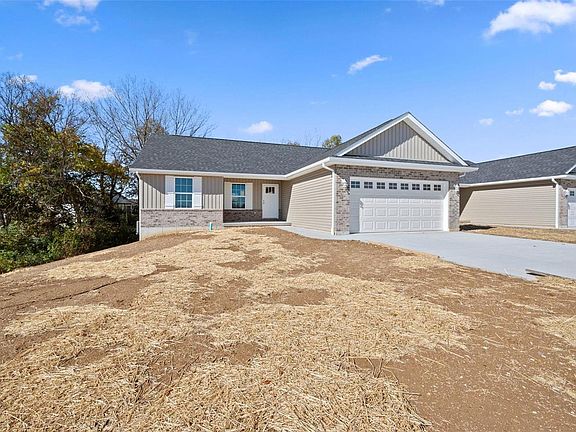 Move in ready! Welcome to Grindstone Grove in Moscow Mills. Beautiful new ranch villa/duplex located on 1/4 acre lot 15B has all the bells and whistles. Each home is designed for personal privacy, loaded with high quality finishes, and built by one of the best custom builders in the area. Your next home is 1216 sq ft, 3 bedroom, 2 bathroom, oversized two car garage and full walkout basement that backs to trees. The custom type finishes include granite countertops, stainless steel appliances, luxury vinyl plank flooring in main living area, spindled staircase railing, vaulted living room and kitchen, large center island, ceiling fans in all bedrooms and living room, can lights, brush nickel finishes including shower door in master, and much more. Grindstone Grove is just off quiet Railroad Street with high speed Gateway Fiber internet, no monthly HOA fee, new concrete streets, street lights, and will have sidewalks throughout for homeowner safety. USDA, VA, & FHA eligible. Agent owned.