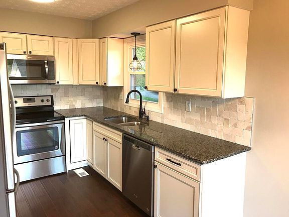 This full brick home is on a quiet dead end street, offering spectacular views off the deck and has been completely remodeled. Hand scraped engineered hardwood floors flow throughout. The kitchen has new cabinets with granite countertops and stainless steel Whirlpool appliances. The living room has a fireplace, bathrooms have shiplap and tile, and the whole house has new windows, fixtures, trim, doors, roof, paint, and more. The basement rec. room offers plenty of space, exposed brick and wood walls, and an oversized tile laundry room. The exterior has landscaping, attached and detached garage, and a basketball court. Owner/agent.