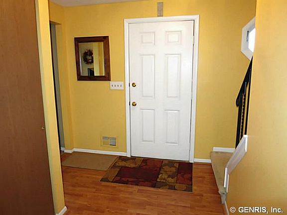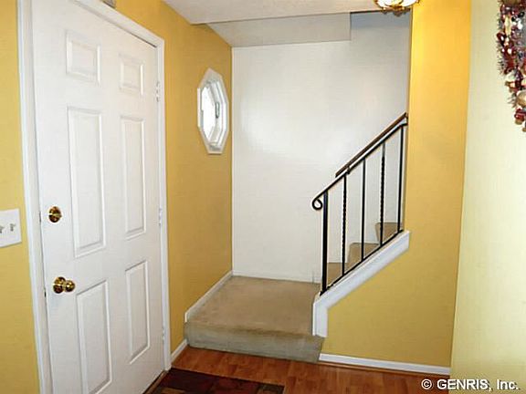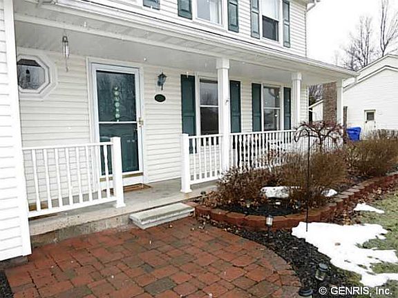 Just listed! Sparkling 3 bedroom Colonial, spacious foyer entry, formal dining room, fireplaced family room with vaulted ceiling, master bath with shower and separate dressing area, laminate floors in kitchen, dinette with 3 window bay and door to deck, vinyl siding, full front porch, shed, modern neutral decor. (sq' per Town Record)