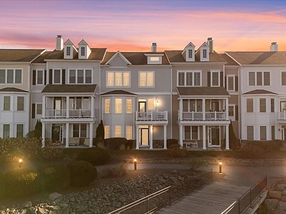 Welcome to 131 HMS Halsted Drive, a stunning direct waterfront townhouse in the prestigious Hewitts Landing community of Hingham. This elegant and modern residence offers an unparalleled lifestyle with its breathtaking views of the vibrant marina and the iconic Boston Skyline in the distance. Spanning 2,586 square feet, this home features two spacious bedrooms, each with an ensuite bathroom, providing ultimate privacy and comfort. The primary suite is a true sanctuary, boasting a spa-like bathroom with an extra-large shower, a luxurious soaking tub, and newly installed granite countertops. The heart of this home is its expansive kitchen, designed for both functionality and style. It includes a generous pantry, a large peninsula, and top-of-the-line GE Monogram stainless steel appliances. Enjoy two outdoor spaces—a serene first-floor patio and a second-floor deck offering spectacular views. It's just a short walk to the ferry to Boston, as well as nearby restaurants and retail shops