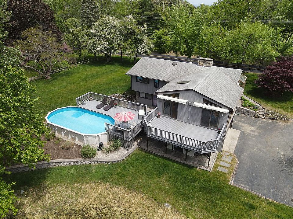 Call/ Text Kathy Sullivan (401) 447-4081 for appointment/ information. Priced to sell “AS IS”. Highest and Best Offers due by Thursday, June 24th @ 5pm. Welcome home to this unique property in desirable Quidnessett area, across from the Quidnessett Country Club. This location is ideal with beaches, bike path, and golfing within walking distance. The home is an expanded raised ranch, 3 bedroom, 2 bath and flexspace with a light filled open concept upper level featuring a kitchen with center island with a glass enclosed breakfast nook, a living room with traditional fireplace and a magnificent great room boasting cathedral ceilings, a stone gas fireplace with floor to ceiling windows overlooking a pond with an abundance of wildlife. Off the great room is a multi-tiered Trex deck that descends to an above ground pool. Finally, a master bedroom, master bath with jacuzzi tub finish off the upper level. The lower level has 2 additional bedrooms, office/ flexspace, full bathroom and an unfinished basement/ laundry room with ample storage. The yard is beautiful and private with mature trees. Perfect for a growing family, retirement and/or nature lovers retreat. A must see property! Call Kathy today to schedule a viewing. Drone shots/videos by - @Keaton_Whelan (Instagram)