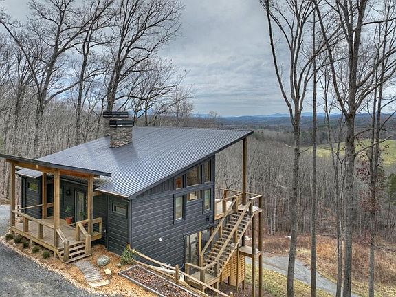 You asked, we delivered! Whether you're looking to purchase your weekend getaway or your full-time forever home, this ultimate mountaintop masterpiece is sure to make a statement! Offering the best of mountain living, this ultra-trendy modern rustic retreat overlooks stunning jaw-dropping year-round layered mountain and pasture views, which are showcased by an abundance of glass and 2 levels of party porches with exterior fireplaces and lower-level bar. This home boasts clean & crisp living space with 2BR/2BA on the main, open living room & kitchen overlooking the mesmerizing views, 2BR/1BA on the terrace level, and amazing custom finishes throughout! Just a "hop, skip, and a jump" from Lake Blue Ridge & downtown Blue Ridge, this one is truly a must see Savor the mountain lifestyle in style!