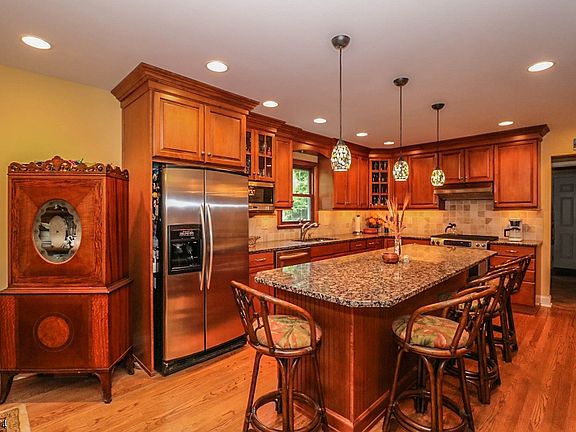 Own a piece of the country & this Center Hall Colonial . Settled on a bit over 2 Acres, Professionally landscaped, NEWER KITCHEN '10 Granite counter as well as 8' Island -Breakfast bar, tiled back- splash, beautifully accented lighting over Island, Maple cabinetry, hard wood floors, recessed lights. Baths all updated in2010 Family Room with wood burning FP recessed lights and crown moldings, 1st floor laundry. Upstairs Master w/ New Bath, & 2 other generous sized BR's. Back deck w/ room for entertaining a crowd, steps down to 2 yr old hot tub(remaining) and across the yard to deck 50x25 housing an above the ground pool 36x18 for warm weather activities. Lots of yard space for sports activities Basket ball court,also new driveway & roof in 2016 .Chimney new liner.Generator,2 zone Furn/CAC'08 ,Shed 14x16 2016