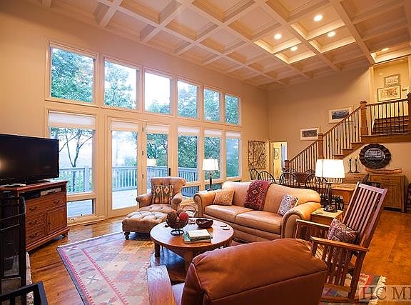 With sparkling, brand new renovations and the vision of a professional designer, today this house has come into its own with great style and a mountain feel. The completely re done kitchen opens out to the soaring architecturally coffered ceilings of the great room. The whole space is bathed in wonderful light. You'll open the front door and head right to the spacious deck where Lake Toxaway and the distant mountains beckon. This is a house built for a weekend full of guests, offering both gathering spaces and private get away areas. Tucked away from the road, privacy and quiet abound, and you won't want to go back home.