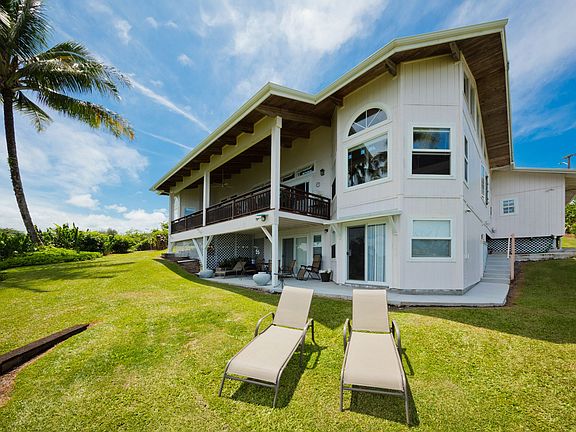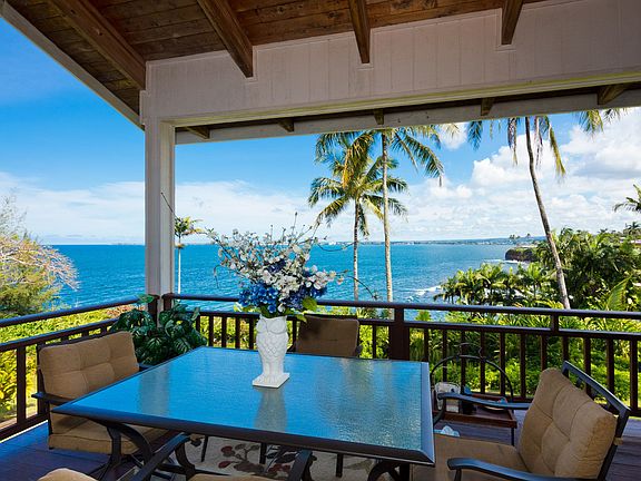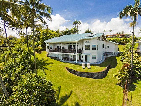 This remarkable oceanfront property, at Honolii Point, has possibly the most outstanding views of Hilo Bay, Bayfront and Breakwater in all of East Hawaii Big Island. The expansive lanai reveals the beauty of the blue Pacific Ocean, the waves breaking at Honolii Beach Park and the white surf crashing on the Hilo Breakwater. Whales and many other forms of ocean life visit Honolii Pt., which is comprised largely by this property. Sailboats, kayaks, tugs and barges, massive cruise ships and other shipping add to the endless charming ocean activity viewed from this cozy outlook.The interior of this home boasts an impressive cathedral ceiling over 20 feet tall, throughout the first floor, with stained tongue and groove ceiling panels, yielding a high-quality, nautical ambiance. The prevailing Trade Winds and ocean breezes keep this home generally cool, with strategically placed ceiling fans contributing to a comfortable environment, with out the need for air conditioning. The expansive living room area flows delightfully into the dining and kitchen area, yielding a marvelous floor plan for entertaining, dinner with family or a convenient way to refill your beverage, as you enjoy the exquisite, ocean side lanai. Downstairs has 2 bedrooms and 1 bath with a separate, private entrance and walk way, yielding convenient split level, discrete living options. These bedrooms also enjoy the remarkable views, ocean breezes, as well as their own patio abutting the rich ,green lawn.The attached garage has two parking spaces, with expansive storage on all sides, for workshop or craft/hobby areas.Not only does this property have its Oceanside, natural beauty: it is conveniently located by only a 10 minute drive to Hilo and shopping! Other services, such as Hilo Medical Center, Kaiser Permanente, doctor, dentist offices are a quick 10-15 minute drive away from Honolii Point, via Rt. 19, on the Hamakua Corridor. Welcome to your ocean side, Hawaii home!