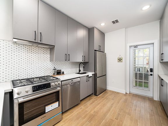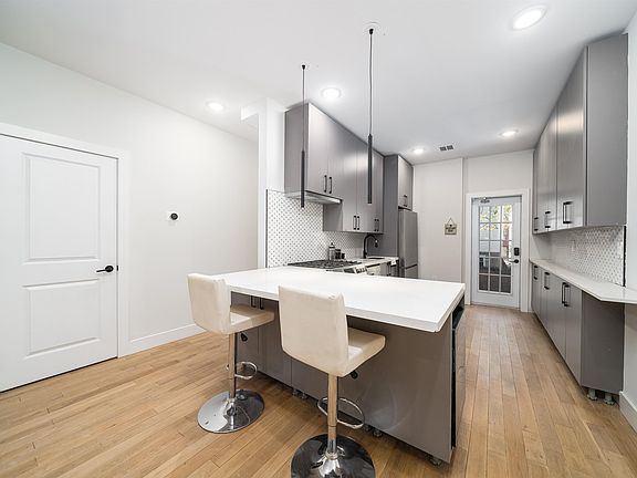 Unique 2 family located in the flourishing Heights neighborhood bordering Journal Square. Modern brick facade, contemporary design, black Pella windows, high end details/finishes. Kitchens features include white quartz countertops, tile backsplash, island seating, open living/dining area. European plank wood flooring, custom Nordic lighting/chandeliers. Spacious primary bedroom w/walk in closet. Baths are appointed with custom slated wood floating vanities, double sinks. Ring doorbell, nest thermostats quiet rock walk floor/ceiling panel soundproofing. Enjoy private outdoor spaces for both units, unit 1 features oversized garden oasis, unit 2 private 1000 sq ft roof deck w/NY views. Just minutes to Path, nearby park/reservoir. If you are looking for space look no morel