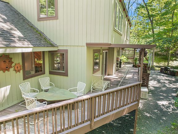 Custom contemporary nestled on 3.89 acres with stunning views. Set on some of the most beautiful land in NE Pennsylvania. The house boasts hardwood floors, a large family room with cathedral cedar ceiling and wrap around outdoor decks, to take in the views, or just relax on a summer day. Newly remodeled kitchen, quartz counter tops, designer cabinetry, tile floors and stainless appliances. Adjacent to the kitchen a spacious dining room with floor to ceiling built in bookcases with lower storage. Two story stucco fireplace. Alarm system, full house generator, paved driveway and wine cellar.