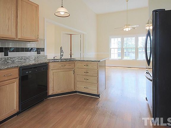 Wow! With newly painted walls & ceilings & new carpet, this bright home is move-in ready!! Great expansive Back Yard abuts Wendell Country Club--gorgeous views! All windows recently replaced; Granite tops; Refrigerator conveys. Master w/lg Palladian window, cathedral ceiling, WI closet w/shelves; Mstr BA w/2 sinks, jetted tub. Oak HW floors, soaring ceilings. Newly paved Driveway, 2-Car Attached Garage plus detached Storage Garage. 41' long Front Porch & Rear Covered Veranda both offer beautiful views.