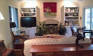 Charming home on a beautifully wooded 1.33-acre lot in the desirable James Creek neighborhood has an inviting floorplan that is open and bright with spacious rooms. The home backs to the 915-acre Weymouth Woods-Sandhills Nature Preserve and has private access to walking trails from the backyard. The main level features hardwood floors, crown molding, and lots of windows across the back overlooking a very private, forest-like lot. The fabulous deck is shaded by wisteria topping a white wood pergola. A cozy living room has a cathedral ceiling, lovely white brick fireplace flanked by built-in wood cabinetry and bookcases, and sliding glass doors that open onto the deck.