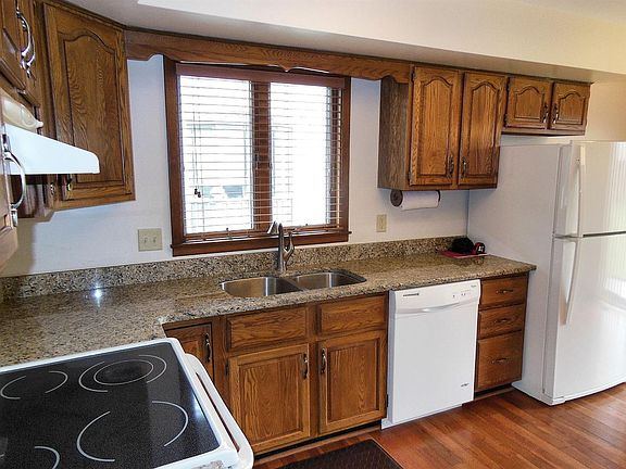 Super sharp 2 bedroom 1 bath ranch style duplex with a full concrete crawl that has easy access for all your storage needs. Attached 1.5 car garage a nice feature, check out the concrete block dividing wall. Inside, this lovely home feels brand new, in many ways it is. Recently painted throughout. Living room features newer carpeting & a wood burning fireplace. Gorgeous granite counters in the kitchen just installed about a 2 years ago. Newer refrigerator & dishwasher and updated hardwood flooring round out the kitchen. Open view off the dinette overlooks the patio area. Both bedrooms feature newer carpeting & lots of closet space, master has a walk in. Full bath is remodeled and has a tile lined tub/shower. Oversized laundry room comes fully equipped with a washer & dryer. Extra large access door and ladder for easy entry to the crawl located in this room. Ask your Realtor for a complete list of updates. Truly a wonderful place to call home, convenient location.