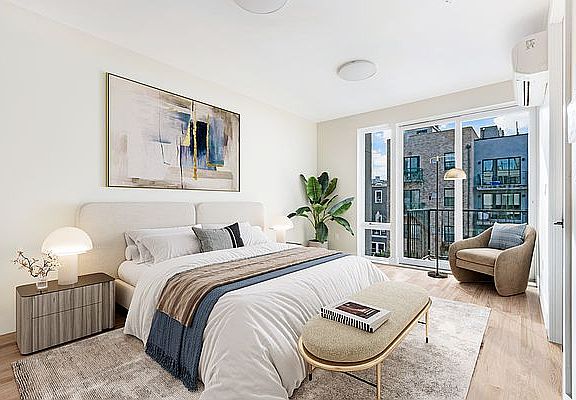 Boasting chic finishes this brand new 1-bedroom home offers a luxury rental experience in a tranquil residential enclave of one of Brooklyn's trendiest neighborhoods. The apartment is a portrait of contemporary comfort and urban design. Beautiful wide plank floors complement airy ceilings and oversized windows with elegant grilles, and eastern exposure. A welcoming foyer with a coat closet flows into an open-concept living, dining, and kitchen space saturated with natural light. The kitchen features lovely fixtures and ample storage. It is equipped with sleek stone countertops and high-end stainless steel appliances. The primary bedroom has a reach-in spacious closet. The bathroom has a custom vanity and an oversized tub. A washer/dryer completes the home. 131 Kingsland is a brand new luxury rental building offering condominium-style finishes and modern interiors. A classic facade with oversized windows captures the character and charm of the area. There's an expansive rooftop deck with lounge furniture and enchanting skyline views. 131 Kingsland is moments from trendy restaurants, cute cafes, and lively bars, and it is close to McCarran Park and Greenpoint. It is also close to public transportation with the L train a short walk away. Pets are welcome. We have units with private outdoor space.