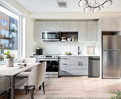 Boasting chic finishes this brand new 1-bedroom home offers a luxury rental experience in a tranquil residential enclave of one of Brooklyn's trendiest neighborhoods. The apartment is a portrait of contemporary comfort and urban design. Beautiful wide plank floors complement airy ceilings and oversized windows with elegant grilles, and eastern exposure. A welcoming foyer with a coat closet flows into an open-concept living, dining, and kitchen space saturated with natural light. The kitchen features lovely fixtures and ample storage. It is equipped with sleek stone countertops and high-end stainless steel appliances. The primary bedroom has a reach-in spacious closet. The bathroom has a custom vanity and an oversized tub. A washer/dryer completes the home. 131 Kingsland is a brand new luxury rental building offering condominium-style finishes and modern interiors. A classic facade with oversized windows captures the character and charm of the area. There's an expansive rooftop deck with lounge furniture and enchanting skyline views. 131 Kingsland is moments from trendy restaurants, cute cafes, and lively bars, and it is close to McCarran Park and Greenpoint. It is also close to public transportation with the L train a short walk away.