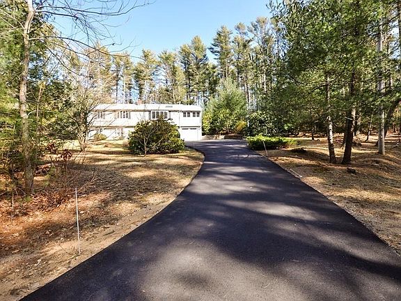 Set back from the road and nestled on nearly 1.5 acres in proximity to shopping, dining, commuter rail and highway access, this spacious Raised Ranch has great potential for new owners to make their personal touches and updates. Splashed with natural light, the main level features an open floor plan living/dining area with hardwood floors, picture window, new skylight and a light and bright kitchen with sliders to the deck. Off the dining area, sliding glass doors invite you into a three season room overlooking the peaceful and private setting surrounded by mature landscaping. All bedrooms are on the main level and have hardwood floors (2 with cedar closets), and share a bath. Downstairs you'll find a good-sized, carpeted family room with fireplace and picture window, full bath with shower, laundry, and access to the oversized two car garage. Central AC is a bonus!