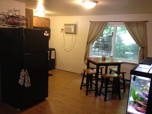 2 bedroom, 1 bath apartment. Remodeled 9 years ago with brand new windows, HVAC, kitchen and bath. Large eat-in kitchen has over the range microwave. Unit has AC, hardwood floors. Coin operated laundry in the basement. FREE offstreet parking in the rear of the building. Short walk to campus. Heat, water, hot water, sewer and trash are a flat fee of $65/mo per person. Tenant pays their own electric-$20-$30/mo per person approximately.