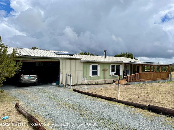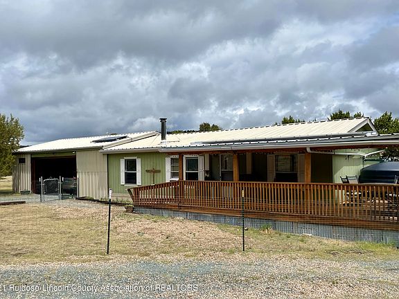 Horses Allowed!! Secluded/Near Lincoln National Forest 3Bedroom/2Bathroom Manufactured Double Wide Built in 2011 on Usable Level 4.4 Acres. Attached carport/Storage Area. Current water source for home is a Rainwater Collection System w/filter approx combined size of tanks is around 7,800 Gallons.Front Partial Covered Deck/Rear Storage shed. Approx Sqft footage is about 1,100.Call Realtor For More Information.