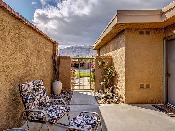 Great new listing at ever popular Sunrise Country Club! Rear patio looks out over the 3rd fairway of the golf course. Cozy and private Lanai courtyard patio in front provides stunning southern views of the Santa Rosa mountains. 1 bedroom 1.5 bathroom Majorca model. The only 1 bedroom model currently available in the development. Sun splashed pool and spa just a short distance away. Ideally located in the heart of Rancho Mirage very near to all the world class shopping, dining, and entertainment the desert area has to offer. Golf, tennis, pickleball, bocce ball, fitness center, lounge, dining room, and grille. Private country club living at an affordable price!