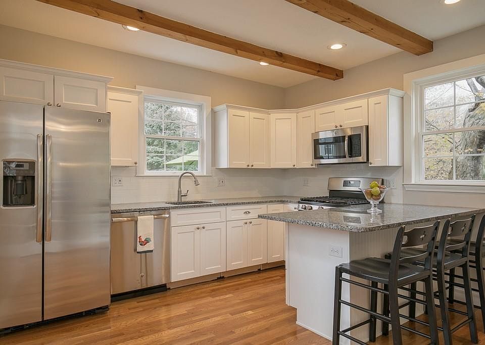 • Kit Dscrp: Main Level, Dining Area, Flooring - Hardwood, Countertops - Stone/Granite/Solid, Cabinets - Upgraded, Breakfast Bar / Nook, Stainless Steel Appliances, Recessed Lighting, Ceiling - Beamed, Exterior Access