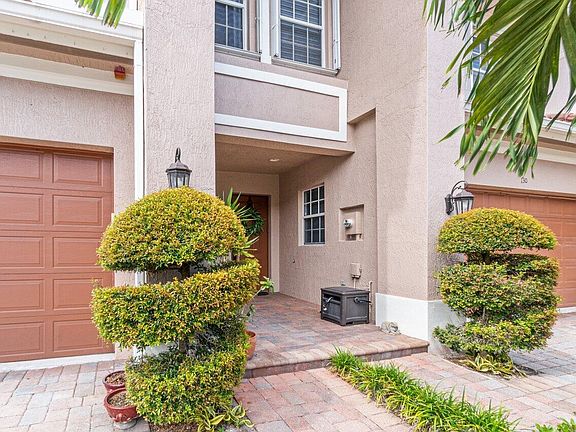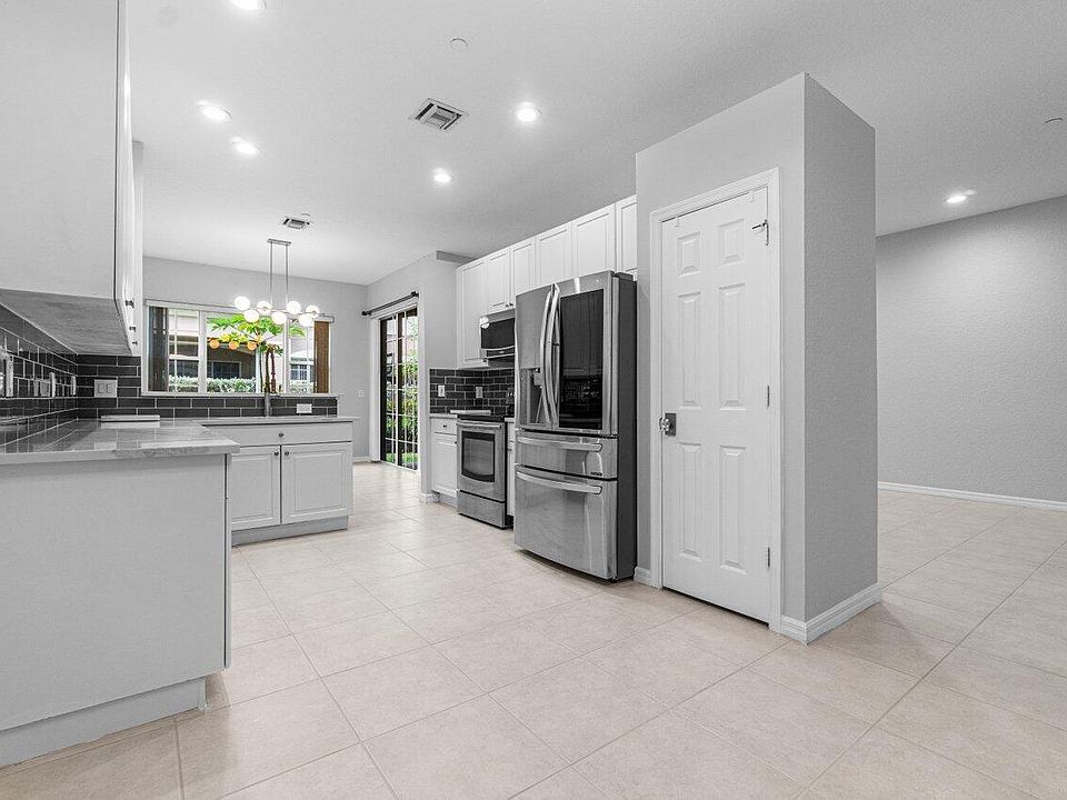 RENOVATED TOWNHOUSE in PRIME LOCATION! Welcome home to Carriage Pointe minutes to THE AVE in DELRAY and the BEACH. This renovated townhouse is located close to everything from shopping to I-95 and beautiful Caloosa park. With over 2,200 sqft of living space, and featuring 10ft ceilings. No carpet throughout this light and bright, spacious, two car garage home. This absolutely exquisite 3 Bedroom, 3 Bathroom, Plus bonus Loft Townhouse has it all. High-end finishes that include: Custom kitchen with white 42'' cabinets (pantry), State-of-the-art, LG refrigerator, brand new modern, mosaic, glass backsplash, brand new 36'' stainless steel sink with ultra-modern chef faucet, new disposal, brand new Calcutta Quartz counter tops. Brand new flooring throughout the second floor. high-efficiency LG washer/dryer, modern solid wood crown molding and entire home and garage freshly painted. Professionally pre-wired, wall mount location for TV in Living room. Custom chandelier and all new high tech fans (Living Room, 3 Bedrooms, and Loft) and perfect new lighting on patio for outdoor entertaining. Smart home features include Kitchen appliances, Schlage smart front door lock, Nest doorbell/ video camera, Nest Thermostat. Custom garage floor. Fully upgraded half bath on first floor with brand new, Quartz Countertop, brand new toilet, sink and lighting. The large master bedroom features a huge on-suite bathroom with dual vanities, brand new Moen Genta faucets, brand new high efficiency toilet, spa shower and large jetted tub and custom high efficiency lighting. The master offers an over-sized walk-in closet. This home boasts lots of natural light. Carriage Pointe is a friendly community offering a pool, private cabana, children's play area, and walking distance to Caloosa Park.