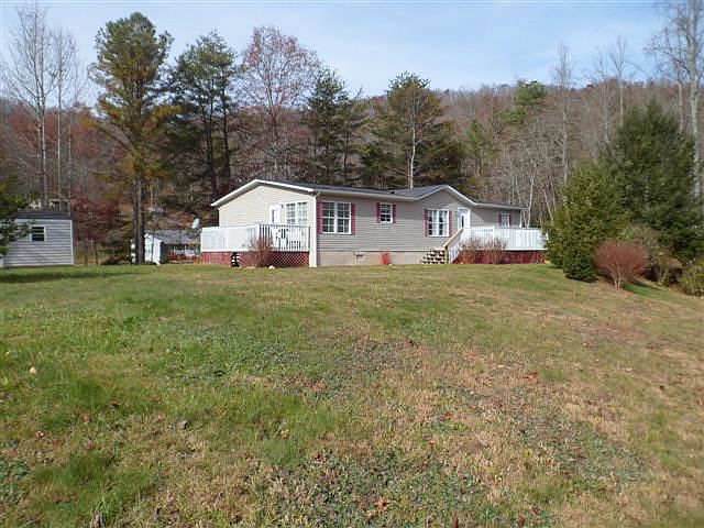 Exceptional view from this well kept 3BR/2BA doublewide featuring split plan, new hardwood floors throughout, wood burning fireplace, 2 decks, utility building all on a nice landscaped 1.07 acres level to rolling yard, large garden space, permanent foundation, easy paved access to driveway in a nice quiet community not far from town.