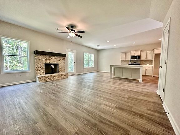 Welcome to the Cumberland Plan! Enter into Foyer leading to Dining Room featuring trim accent and farmhouse light fixture. Open Family Room/Kitchen. Gorgeous Kitchen features granite counters, tile backsplash, stainless: range/oven, dishwasher, & micro hood. Large Pantry. Family Room features fireplace with stone surround and rough sewn cedar mantle! On the main level you'll have a flex room and 1/2 bath ideal for office, playroom, etc. Upstairs leads to spacious Owner's Suite with Sitting Area. Owner's Bath has luxurious tiled shower, garden tub with tile surround, and double vanity w/quartz or granite counters. Three guest rooms, hallway bathroom, and laundry room are also found on the second level. LVP flooring throughout the main level, Smooth Ceilings, Ceiling Fan in Family Room and Owner's Suite. Each guest room is pre-wired for future ceiling fan. JUST MINUTES FROM LONG BRIDGE FOR ACCESS TO LAKE HARDING!