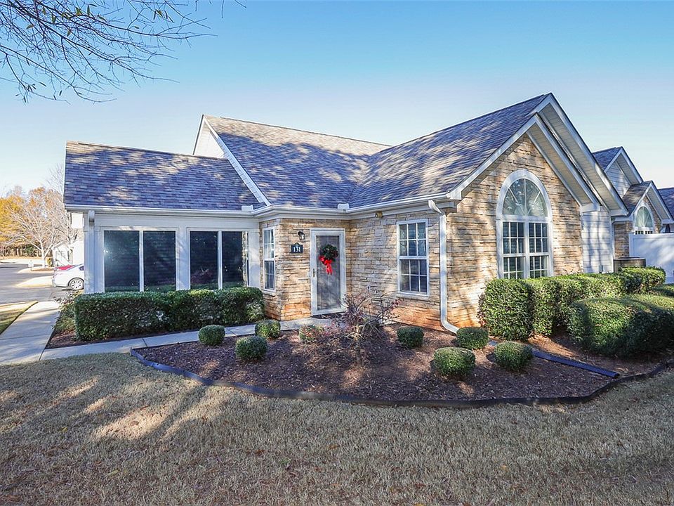 Welcome to easy, maintenance-free living at The Ravines at Holly Creek! This beautifully maintained 2-bedroom, 2-bath townhouse features an oversized 2-car garage and a unique layout offering the flexibility of two primary suites, one with a large walk-in shower and the other with a tub/shower combination, both with walk-in closets. The floor plan includes a formal dining area, a spacious living room, and a bright, large sunroom. While the units are attached, they are designed to maximize privacy and share only the garage wall with the immediate neighbor. The HOA provides a maintenance-free lifestyle, covering exterior maintenance, yard work, and access to excellent community amenities, including a pool, clubhouse, and fitness center. Located just off Greenville Street, this home is less than a five-minute drive to dining, shopping, AnMed North Health Campus, and the Anderson YMCA. This is a truly move-in-ready home with abundant storage and a fantastic location.