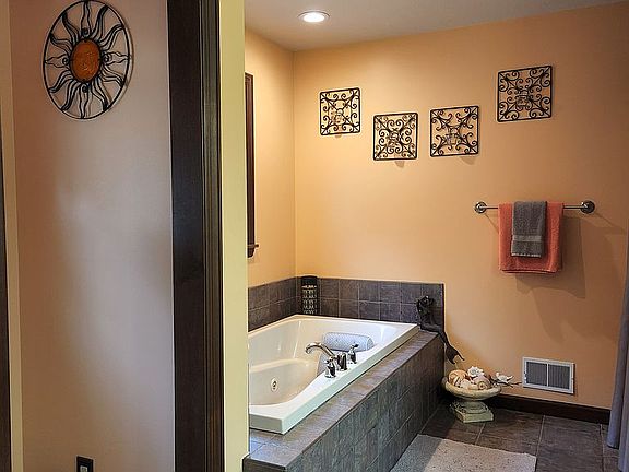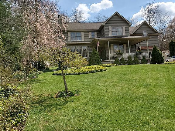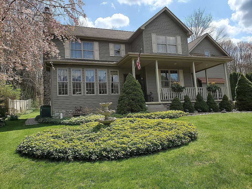 APPRAISAL VALUE 2022 WAS $550,000. Two Story custom built vinyl and River rock stone house sitting on a meticulous landscaped wooded lot. Two car attached and three car detached matching garages. Treelined concrete drive. Floor to ceiling river rock log burning fireplaces in the livingroom and master bedroom. Gourmet eat-in kitchen with honey maple cabinetry and blue pearl granite countertops. 3 ovens and large kitchen island. Formal diningroom with tray ceilings. Hardwood flooring. First floor laundry. 9' ceilings throughout. Large finished bonus room over the garage. Anderson windows. Large mastersuite with a walkin closet with double pocket doors leading to masterbath with deep oversized jacuzzi tub and separate shower and double bowl sinks. Solid wood french doors and pocket doors. Den on the first floor. Beautiful unique led lighting with alot of stained glass involved. Finished basement. Covered front and rear porches. Utilities: electric, water and sewer. Taxes $6300