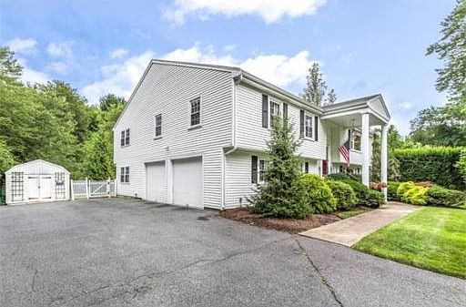 PRICED TO SELL! 75K price reduction for this Fabulous 4 bedroom, 3 bath expanded home on a cul de sac with a private acre+ lot which abuts conservation land and Sabrina Lake, near the Wellesley Line. Spacious living and dining rooms with a lovely custom fireplace. Beautifully updated Kitchen opens into a bright family room with built-ins. Modern baths. Master Suite with finished loft library, office and a large cedar closet. Additional living space boasts a large bedroom with fireplace, game room and dining area, great for playroom, in-law, au pair , private access. Walk-out access to a unique Ipe large Brazilian walnut wood patio, out-door gas grill and level yard - great for entertaining. Hot tub with magnificent garden views. Central air, generator with transfer switch, irrigation system and more. A quiet oasis in your own back yard.