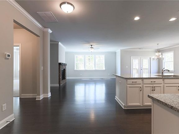 - Kitchen Features: Breakfast Bar, View to Family Room, Kitchen Island, Pantry Walk-In, Breakfast Room, Solid Surface Counters, Cabinets White