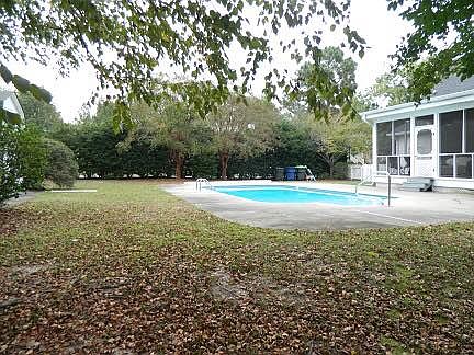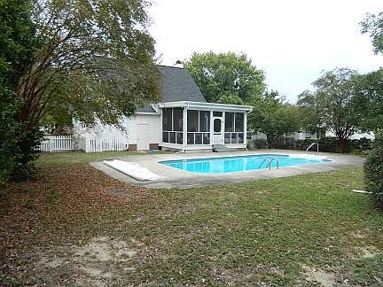 Charming Lexington home on corner lot w/beautiful inground pool. Master BR downstairs. Great room w/brick FP. Eat-in kitchen. Terrific screened porch overlooks pool & extensive patio perfect for entertaining. New pool liner 2011. Roof 2006. Great curb appeal.