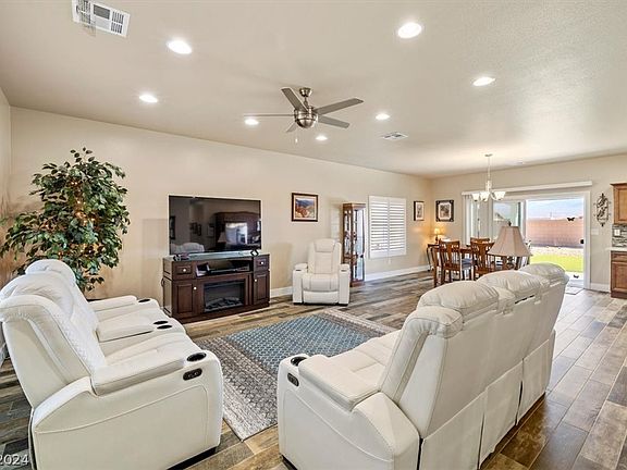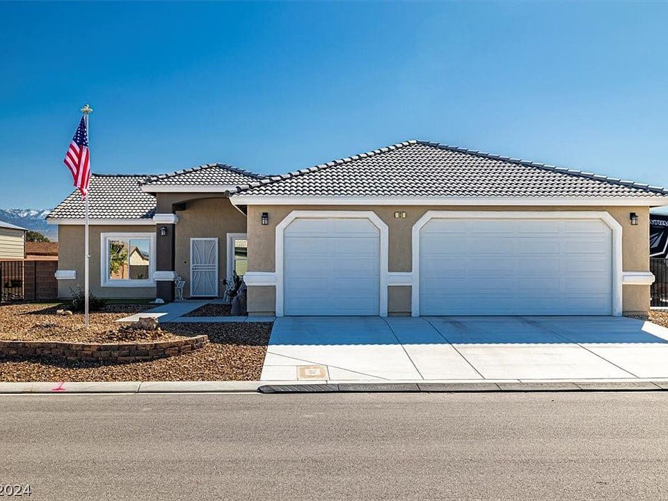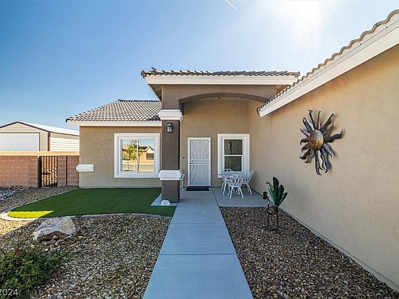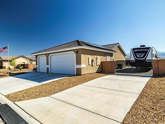 Welcome to your dream home! This stunning 3 bed, 2 bathroom residence offers 1,673SqFt of immaculate living space. The property features a fully finished 3 car garage, complete with 55' concrete RV parking pad w/full hookups. A secure block wall ensures privacy & security, while a 16x10 tuff shed provides ample storage space. Enjoy mountain views from the meticulously landscaped backyard with no homes behind, featuring an extended covered patio with an extra seating area. Additional highlights include security doors, whole house solar at a low monthly fee, solar tubes for enhanced natural lighting, Norman Shutters throughout, upgraded cabinetry, & a full backsplash in the kitchen complemented by stainless steel appliances. Porcelain tile flooring & ceiling fans throughout add to the comfort & style of this home. Located in a quiet neighborhood close to shopping and medical facilities, this property offers the perfect blend of luxury & convenience.