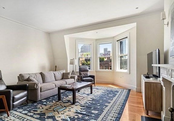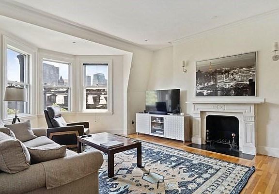This grand and spacious south-facing penthouse apartment features the coveted combination of a private roof deck (14 x 28 ft) & deeded parking spot. Located on highly sought-after Marlborough St and close to the Public Gardens and Copley Square, the stately home features 3 generous bedrooms (1 is extremely large with oodles of built-in shelving) and a huge living room/dining area which boasts great natural light & superb city views. The kitchen features natural birch cabinets accentuated by granite counters, high-end ss appliances, & washer /dryer. Beautiful hardwood floors throughout and central AC. The welcoming entrance is on the third floor and is accentuated by magnificent woodwork, built-in storage and a large skylight. There are 2 classic marble bathrooms with glass shower enclosures. The living space has great volume, as there are 12 ft ceilings with crown molding and recessed lighting throughout. The fireplace in the master bedroom works. A modern staircase leads to a study (perfect for a home office) complete with skylights and direct access to the private roof deck. A terrific urban home with a rare combo of features. See MLS #73265887 for greater detail and a floor plan. Listed by Stan Heydrick at Comprehensive Realty Service. There are currently tenants there and 48 hours notice is requested for showings. No smoking allowed. Pets are negotiable. Tenant pays for all utilities. Laundry in the unit plus common laundry in the basement. Per condo rules, 3 or more unrelated people may not rent in the building. 1 off-street parking spot included in the rent. Private roof deck.