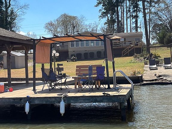 We are Motivated Sellers! Located on the Putnam Co- Balwin Co line, a quarter mi off Hwy 441, Lake Front home, 8 ft ceilings, wide Front Porch, back porch, new 32x20 deck for grilling. Huge kitchen with granite countertops, under mount lights , wood burning fireplace, master has queen bed, The first spare bedroom has a queen and a twin, and the second spare bedroom has 2 full beds. Sleeps nine people easy. The bedrooms are very spacious and have oversized closets, soaking tub and shower in master bath, beautifully decorated with lots of color! Two living rooms, and a bar. FULLY FURNISHED (new furnishings / bedding / linens / pots pans, dishes, etc) and ALL APPLIANCES INCLUDING WASHER, DRYER and 2nd REFRIGERATOR TO CONVEY. 3 year old 20 sear ac unit. Huge double boat house with w/2lifts and storage area. 125 ft on water with seawall, large dock, concrete boat landing. Water is eight feet deep at dock, Sandy beach on one corner. One side has a great neighbor separated by a fence and the other side is wooded and owned by Ga Power. This is NOT a Ga Power Lease Lot. Whole yard has been sodded and lots of landscaping and a sprinkler system thtat covers both backyard and front yard. Fenced in back yard with double gate. Large concrete driveway for extra parking. At end of driveway is a Concrete pad with metal carport covering waiting for a garage/shop to be built. JUST BRING YOUR TOOTHBRUSH and start making those great family memories on the .Think about the time and effort you are going to save by already having everything in place! We are just an hr away and will be happy to show this home almost any time at your convenience. Here are just some of this homes amenities. Storage under porch and in boat house.