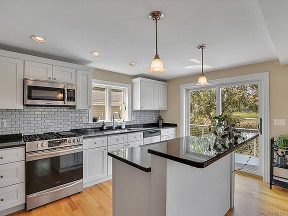 Discover this waterfront delight in charming Chester, sure to reward with year-round views! Completely and thoughtfully renovated in 2012 from the ground up (including brand new septic system), this pristine Colonial offers 3 floors of living space and a smart L-shape open floor plan ensuring that you always have a gorgeous view. In addition to some hardworking 1st floor spaces (roomy mudroom, full bath and laundry room), the main living area serves up the ideal layout for dining, cooking and relaxing. The space enjoys loads of windows and natural light, oak HW flooring, white kitchen cabinetry w/ granite counters and marble tile backsplash, tiered island with breakfast bar, and stainless appliances including a new gas range -- all with amazing views of Chester Cove. Step through the slider and get even closer to those glorious sunsets from the large deck with stainless cable railing. Upstairs are 3 perfect bedrooms, 2 with western exposure & unobstructed water views. The primary bedroom includes a walk-in-closet and Jack and Jill bathroom. The lower level provides additional storage and finished space, ideal for a craft or yoga studio, or home gym. Need more to love? Central A/C, new hot water heater (2024), plenty of closets and storage, 1-car garage with 50 AMP EV charger & private level yard. Just a mile to Chester Village center and a half mile to the marinas. Enjoy everything that this picturesque CT town has to offer and, remember, everything was new in 2012 Please note that the brown garage building to the right of the house (seen from the road) is NOT part of this property. Copywriting was generated by a human :) Be sure to view the floor plans!