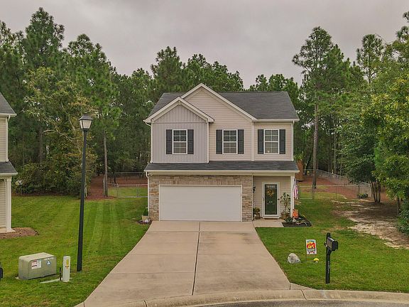 Attractive 2 story, newer home in great condition plus easy-care including Leaf Filter gutter guards [w/ lifetime warranty]! Located on a cul-de-sac and sitting on .62-acre lot; ready for its new owners. This lovely home offers an open floor plan with a wonderful open great room and dining room area off the kitchen, ideal for entertainment and family enjoyment. The kitchen has plenty of space to spread out, offering lots of cabinetry, kitchen island, wonderful granite counter space, beautiful tile backsplash, and walk in pantry. The comfortable bedrooms are located upstairs, well sized and each offers its own appeal and charm. The spacious primary suite has its own private bathroom with double bowl vanity, large walk-in closet, and delightful décor'; the ideal place to relax and unwind. There is a small loft area off to the side overlooking the foyer area that can be used in many ways; reading area, office, sitting area or just to decorate. There is a handy laundry room upstairs and a downstairs guest bath. There is an attached 2 car garage with opener. Your family will enjoy the large, fenced back yard (yard goes past the fence area if you wanted to expand your yard even more) with covered patio area which is great for grilling or dining al fresco. The oversized firepit area is where family and friends will come to gather to make many memories. Looking for storage? There is a large 10'x20' outbuilding with work benches and loft area on both sides for storing. This home is situated close to the interstate, Lexington, Columbia, or even Aiken. Great access to shopping, medical facilities, restaurants nearby but out of the everyday hustle and bustle. Call and find out, how affordable home ownership can be...it can be less than rent!