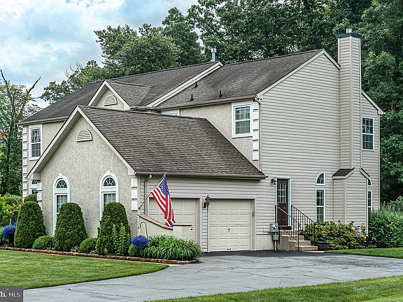 Absolutely Stunning Contemporary located in beautiful Hampton Hills! You will love this Gorgeous Home the moment you arrive with .59 acres and 2 Car side entry garage. Enter the Foyer on Cherry Hardwood Flooring which continues into the Formal Living Room with 2 Palladian Windows. French Doors open into the Formal Dining Room accented with tray ceiling, chair rail, crown molding and newer chandelier. The Upgraded Kitchen showcases 42" Cabinetry, Cherry Hardwood Flooring, New Stainless Appliances, gas range, island, pantry, built-in desk and breakfast room. Step down into the sunken Great Room featuring gas Fireplace with Marble surround and recessed lighting. The Powder Room and Laundry Room with New Washer and Dryer complete the Main Level. The Upper Level features the Primary Bedroom ensuite with vaulted ceiling, walk-in closet and French Doors leading to the Master Bath with New Seamless Shower, Garden Tub and ceramic tile flooring. Three additional spacious bedrooms and Newer Hall Bath with Seamless Shower and dual sink vanity complete the upper level. The Partially Finished Carpeted Basement is great for entertaining with French Drain, new lighting, sump pump, spacious waterproofed crawl and an additional storage area. Relax on the Trex Deck overlooking this private wooded tranquil fenced backyard. 9ft Ceilings, Newer HVAC, Inground Sprinkler and Alarm System. Easy access to major roads, Philadelphia, Atlantic City, Rowan University, hospitals and shopping. This one is Must See!