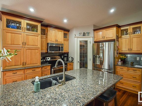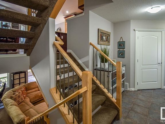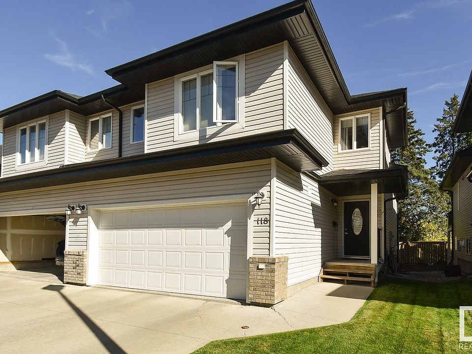 Look no more… Peacefully located 18+ executive adult living in Regal Point overlooks forested Heritage Park within walking distance to Queen Street Medical Centre and Spruce Grove's city centre. Two bedrooms and three full baths including 4-pce ensuite. Tasteful décor and wonderful upgrades with no detail missed. Bright entry has great transition to the double garage, laundry, and open staircase with maple/wrought iron railings. This walk-out 1311 sqft split-level is an absolute showcase of design and craftsmanship with tigerwood flooring complementing tile and neutral upgraded carpet. Main living area has refreshing east-facing view of ever-changing seasons. Enjoy BBQs or morning coffee on care-free deck with natural gas line. Island kitchen is dressed in dramatic bordeaux cherry & black, granite, stone sink, tiled splash, custom baking centre, deep drawers and stainless appliances. Walk-out basement has 2nd fireplace plus lower patio. New shingles in 2022 and HWT in 2020. Welcome home!