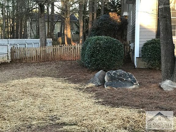 Adorable ranch home with professionally landscaped yard including wood fence. Covered front porch greets you into small foyer and large vaulted ceiling den with fireplace. Open plan with access to screen porch, deck and kitchen with granite countertops. All new wood laminate wood flooring in living, kitchen and dining area. Dining room boasts wainscoting walls & vaulted ceiling. Large laundry room with slate grey tile flooring leading to 2 car garage. Master Suite has trey ceiling and large walk-in closet and additional linen closet, granite countertops, garden tub, double sinks, separate shower and slate tile floors. Home is a split plan and boasts 2 large rooms with full bath with granite & slate tile floors. All new paint inside and out. Deck restained. Beautiful wooded lot all situated on a private cul-de-sac street. All offers must accompany a Pre-qualification letter.