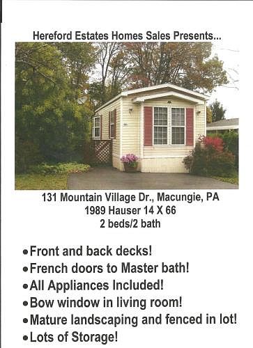Mature landscaped lot with covered deck, Private master bath wtih garden tub and french doors. Spacious bedrooms and open floor plan.Basic lot rent only $354.00/month
