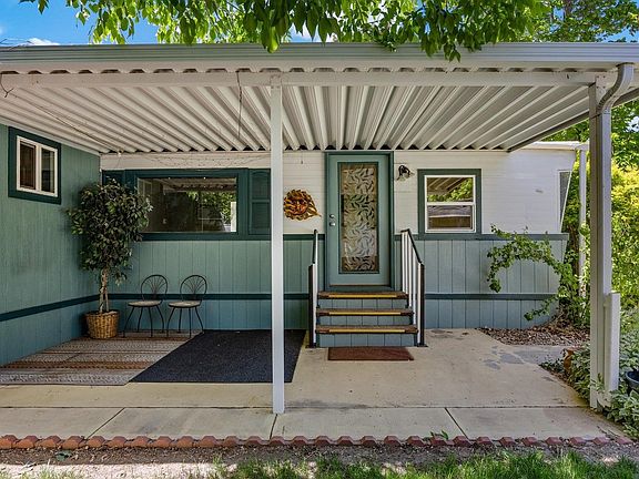 Discover the ease and charm of Palisade Wine Country in this inviting 1-bedroom, 1-bathroom manufactured home. Key updates were completed about three years ago, enhancing its comfort and appeal, including a new furnace, a new hot water heater, fresh paint, updated flooring, exterior paint, and remodeled bathroom. Situated in a well-maintained park with beautiful, mature landscaping, this home offers an unbeatable location within walking distance to Downtown Palisade's vibrant atmosphere. Enjoy leisurely strolls to local wineries, shops, and eateries. The large covered front patio is perfect for enjoying Colorado's beautiful weather. Inside, the open-concept living area boasts plenty of cabinet space, and all appliances are included. A practical laundry/mudroom adds convenience with a wash sink, extra storage, and a folding counter. Plus, two large sheds provide ample space for storage, hobbies, or even a small workshop. Embrace a comfortable, low-maintenance lifestyle with important updates already addressed, in a prime Palisade location!