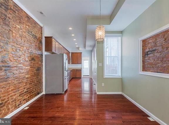 Beautifully renovated home on a tree-lined street of Butchers Hill. The house offers spacious and airy first level with an open floor plan, gleaming hardwood floors, exposed brick and high ceilings, renovated kitchen with granite and stainless steel appliances, and a main level half bath. Second floors offers 2 bedroom suites - both with ensuite full baths, and convenient bedroom laundry. The finished lower level could be used as a guest bedroom, office or a den. Close to Johns Hopkins, Fells Point, Harbor East and Canton. Available for occupancy immediately.