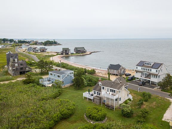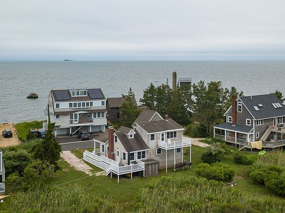 Water, water everywhere! Priceless views from every room. Long Island Sound to the South, Guilford Harbor to the West, East River w/ a no fee Conn State Boat Launch to the North. Combine all that w/ a 1/3 interest in a separate parcel, a private waterfront property just across the street with a sandy beach! The outdoor living is extensive. This year round Beach Home has 4 different Trex decking areas on 3 sides & 2 levels to start your morning w/ gorgeous sunrises, feel the cool breezes off the water throughout the day & end it all w/ magnificent sunsets over the salt meadows & harbor. This light & bright Contemporary Cape with open floor plan was totally renovated in 2004, well maintained & improved upon since. The front Sitting Porch leads into the Living Room with a custom beach stone fireplace (Conch Shells included) & office nook in the corner. A large Dining Room blends into the Kitchen with granite island & counters. Also on this level is a tiled tub/shower Bathroom & 2 Bedrooms, one w/ it's own private deck. The entire 2nd floor is a deluxe & spacious Master Suite w/ vaulted ceilings, a front sitting room looking out at the Sound, full bath w/ tiled shower & marble vanity, a separate office perfect for overflow guests PLUS a good size private balcony deck overlooking expansive salt meadows & an active osprey nest. A breathtaking spot like this that allows for year round vacationing on a quiet cul-de-sac surrounded by open skies is an unique opportunity so don't wait.