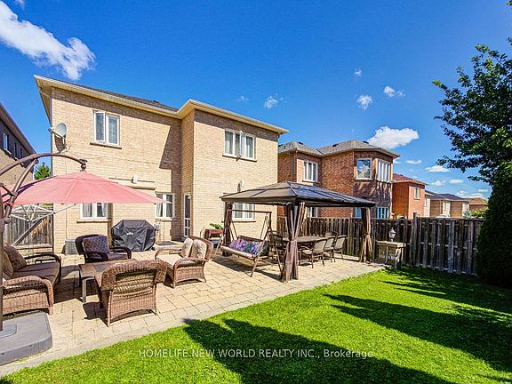 Welcome Home! This unique custom-built luxury home in Thornhill Woods , meticulously finished spaces on the main and plus additionally a newly constructed basement that is nothing short a family place with extra bedroom and entertainment room, bar and extra washroom. Luxurious touches around & vaulted ceilings, pot lights & built-ins thru out. The bright eat-in chef's kitchen features top-of-the-line B/I appliances 2019 , oversized center island, W/o to covered patio gazebo and newly done interlocking in 2022 that leads to a backyard oasis. Spacious family room w/gas fireplace . Main floor office or can be as additional bedroom , perfect living room combined with dinning room .Primary bdrm with extra large W/I closet and 4 piece ensuite w/jacuzzi bathtub .Bathroom renovated 2022. 3 bedrooms feature ensuites &plus 1 large bedroom W/I closets( 4 total on the second floor ). New roof 2021. Water heater 2025, Furnace 2023, Hardwood floors through the house , 9 feet ceiling and tall 9 feet custom doors Come and see it