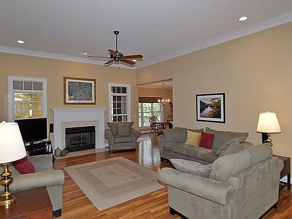 Located in the lovely Kings Grant neighborhood, this brick home features over 3,000 square feet with a great floorplanall but the bonus room is on the main level! A welcoming foyer greets you as you enter, with an open formal dining room to one side and on the other a bedroom with vaulted ceiling and that also makes a great home office or study. The large family room is located in the center of the home and has 13' ceilings, a gas log fireplace and windows that overlook the screened porch. Hardwood floors are throughout these areas as well as the breakfast room and the well-equipped kitchen. The bedrooms are of a split design, and the master suite features a tray ceiling and large master bath with double sinks, jetted tub and separate shower. A great screened porch enjoys views of the woods beyond and the deck gives you additional outdoor space. An excellent value in this upscale and very convenient neighborhood.