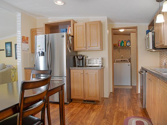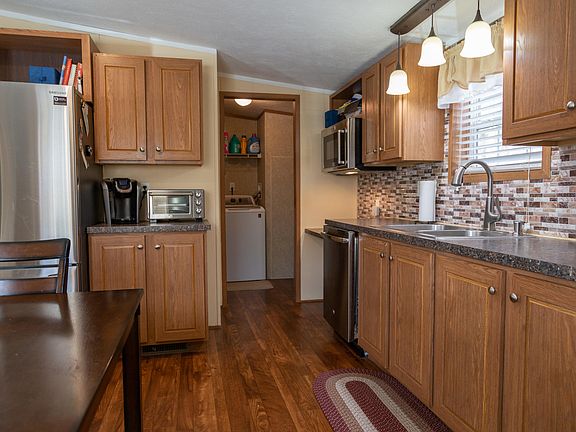 Enjoy this maintenance-free, 3 bedroom, 2 full bath manufactured double wide home. This 2-acre, double lot is located on a quiet private road in Bridgton, Maine. The Master bedroom has a walk-in closet and ensuite bath. Laundry is a separate room off the kitchen with a separate entrance from the back yard. Stainless steel kitchen appliances are only one year old (extended warranties included). Washer and dryer included. Custom wood blinds will be conveyed. Many upgrades, including newly painted walls and ceilings, new carpet in the living room, and 2 of the bedrooms. Wood plank flooring in foyer and hallway. New front door with storm door. All new light fixtures in the kitchen, bathrooms, and hallway. Crown molding in the hallway and living room. 10x16 pressure treated deck in front of the house. Only minutes from Shawnee Ski Area, Moose Pond, and Highland Lake. This home is close to the hospital and all the amenities downtown Brighton has to offer. Close to North Windham, and 30 min to North Conway for plenty of shopping.