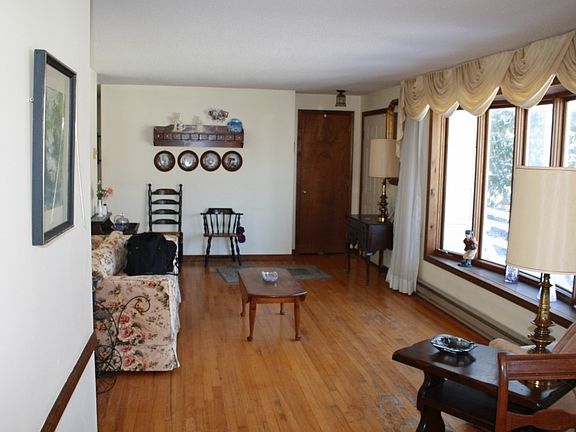 Ranch on lightly wooded lot. Gas Fireplace and deck. Two car garage underneath.