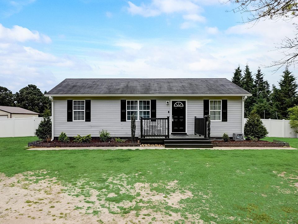 Nestled within the serene landscapes of Deerwood Subdivision, this ranch-style gem invites you to embrace the essence of tranquil living! A picturesque front porch welcomes you home, perfect for morning coffee. The open floor plan seamless blends the living space with vaulted ceilings into the kitchen that has lots of cabinet space and an island. Retreat to the primary bedroom that features an ensuite bathroom for maximum convenience. Two additional bedrooms provide space for guests or a home office. Venture outside to the expansive deck overlooking nearly an acre of land! Don't miss the opportunity to make this your own sanctuary in Deerwood. A short commute to all the shops and restaurants that Downtown Zebulon has to offer!