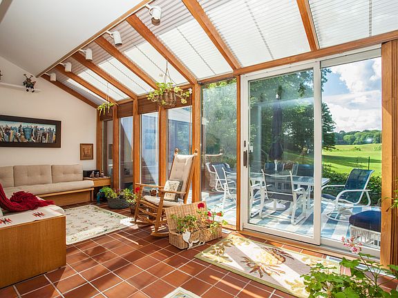 Look no further: You've found the perfect weekend retreat in a peaceful, beautiful environment! This house is ready for you to bring your toothbrush and move in. Custom-built cabinetry throughout makes moving so easy. This unique compound with gated entry leads to a bright and sunny open floor plan home. Enjoy pastoral views over fields of green and beautiful perennial gardens that surround you, as well as a greenhouse with a potting shed and private sitting area and wandering paths that lead to a bridge over a scenic stream. A private pool and pool house provide your entertaining destination. The house has an open-space living area, which includes a kitchen with top-grade appliances and granite counters. This is a special spot on one of the loveliest roads in Pound Ridge.